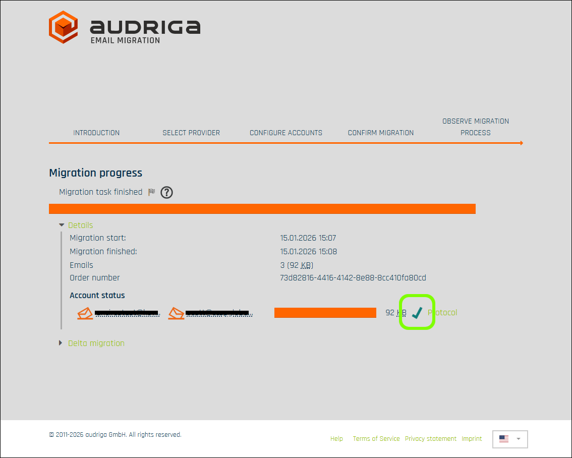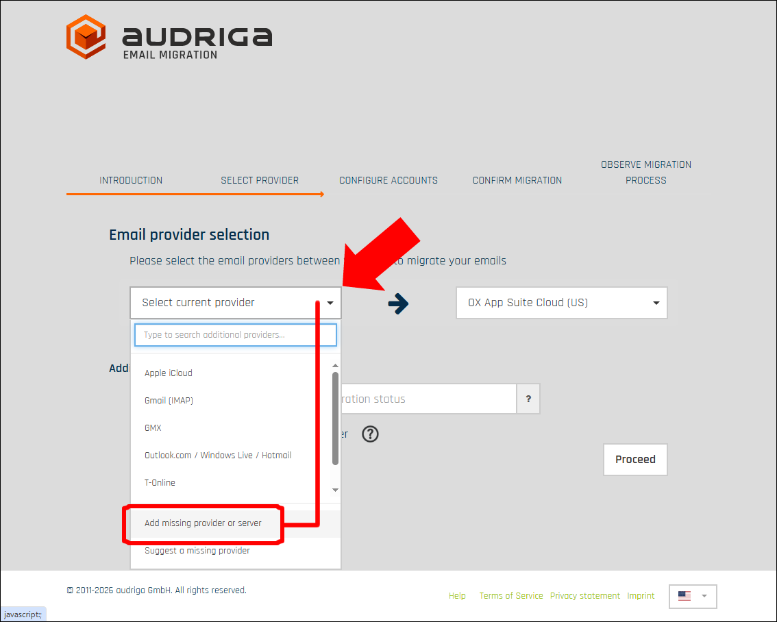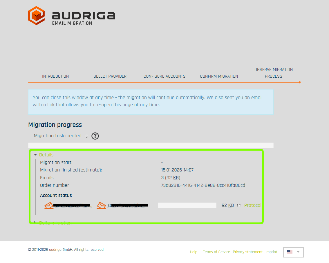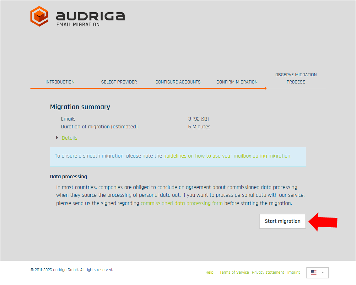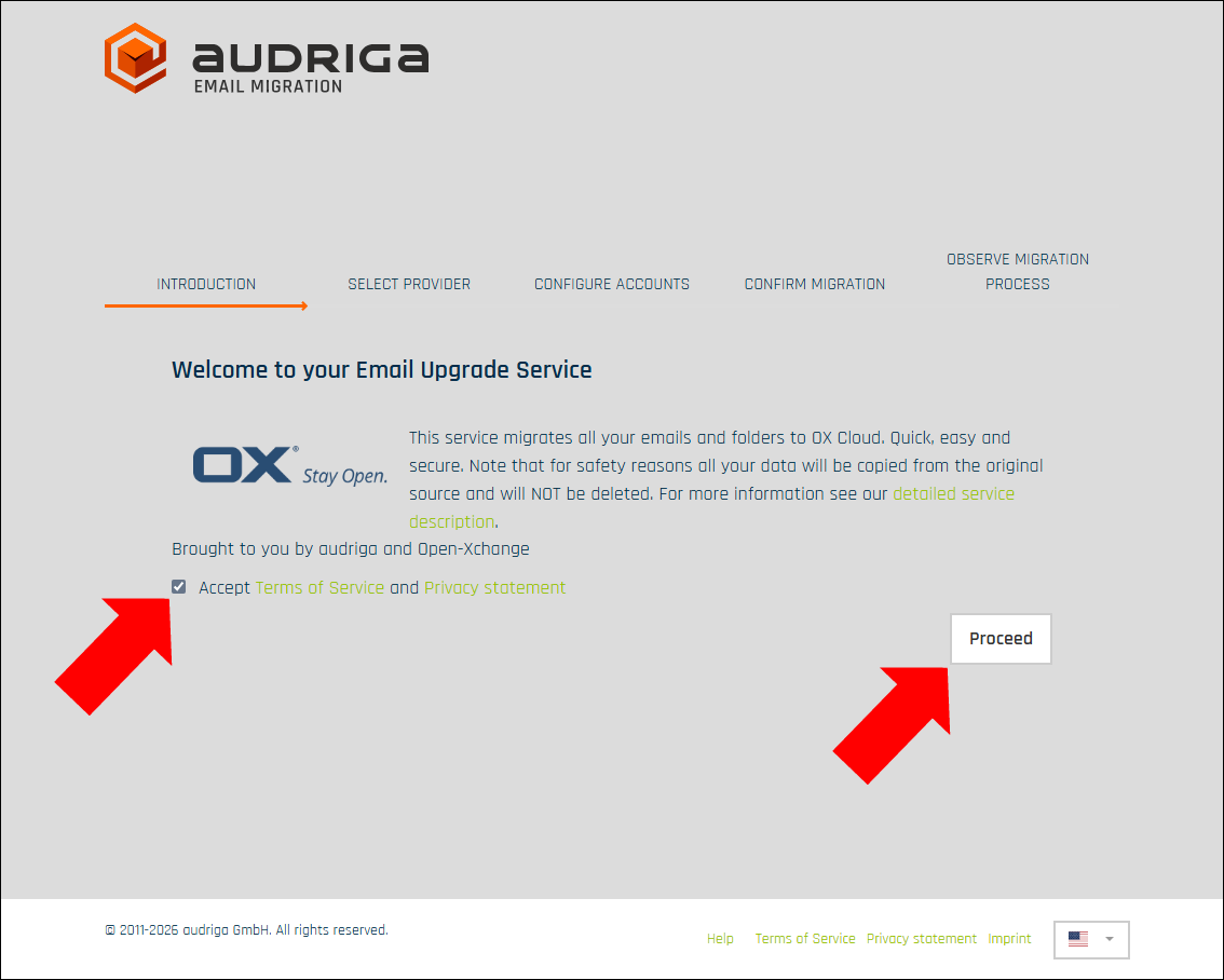 When the migration process is ready to move forward you will see how many emails will be migrated, click [Proceed]