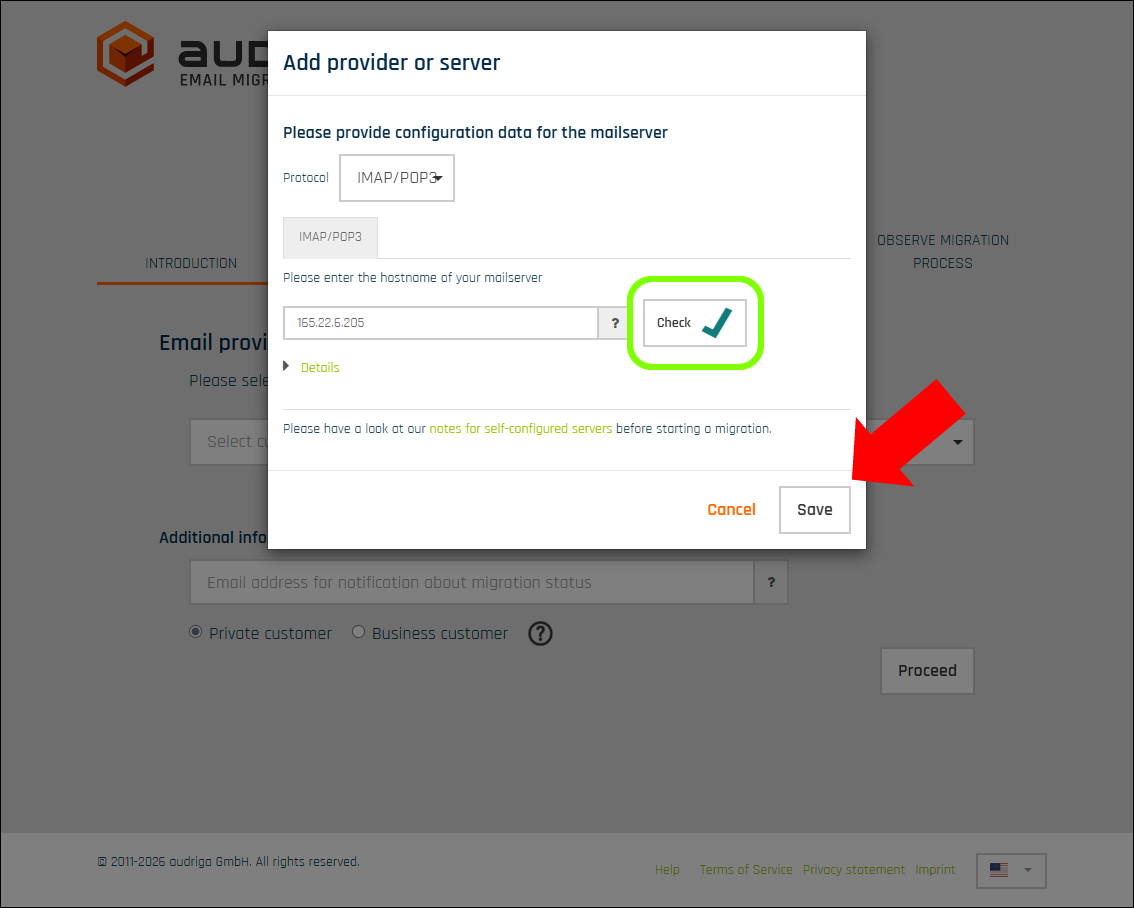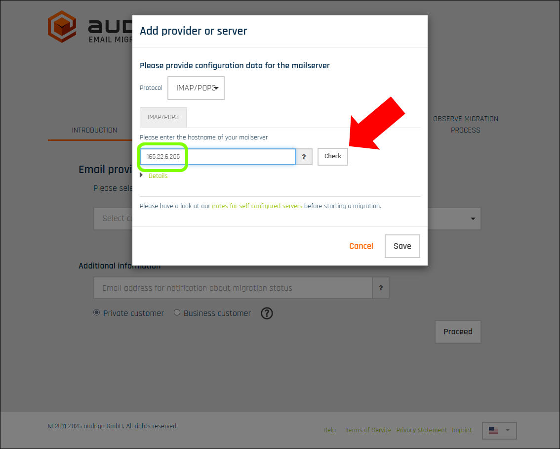 In the text field add this IP address: 165.22.6.205 and then click [Check]