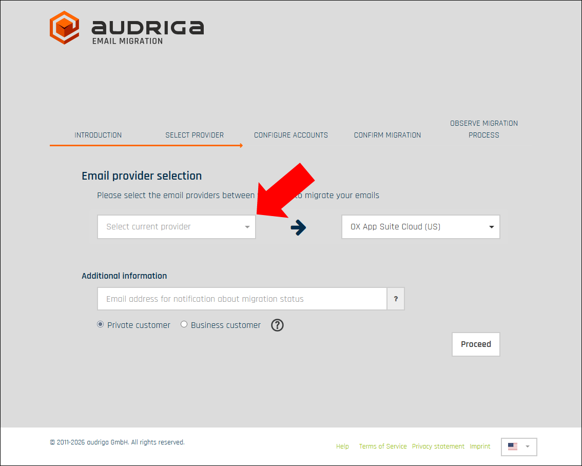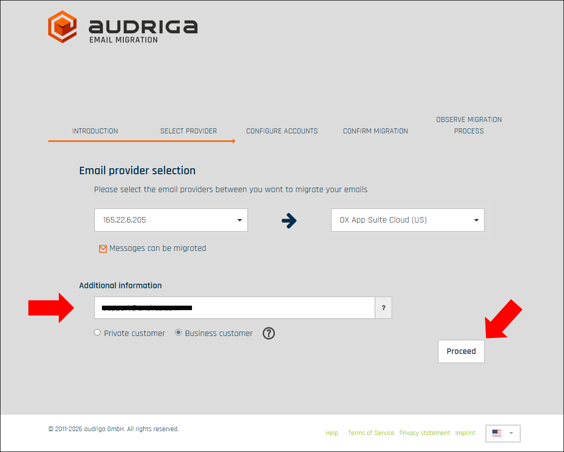 The Additional information box allows you to enter an email address to receive updates on the Status of the migration, enter an email address you use and click [Proceed]